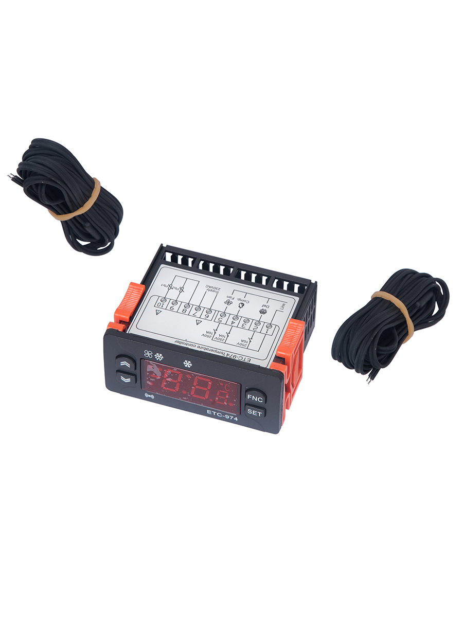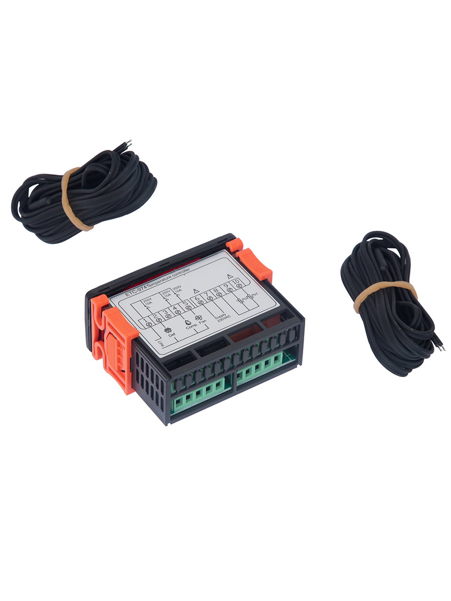 - Цифровой контроллер температуры ETC-974, два датчика, оттайка