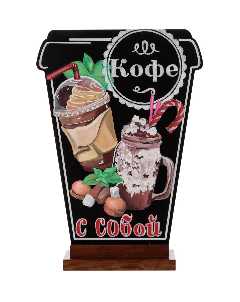 - Меловая доска «Кофе с собой» 420х300 мм на деревянной подставке с росписью
