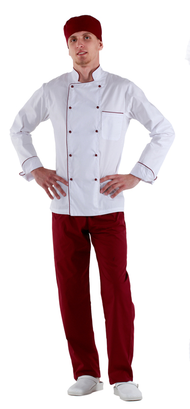 - Куртка шеф-повара белая мужская с манжетом (отделка бордовый кант) [00002]