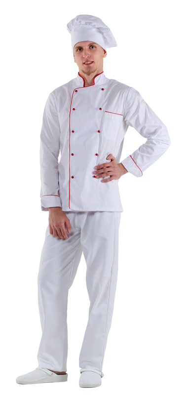 - Куртка шеф-повара белая мужская с манжетом (отделка красный кант) [00002]
