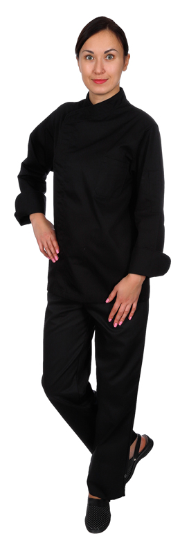 - Куртка шеф-повара премиум черная рукав длинный с манжетом (отделка черный кант) [00012]