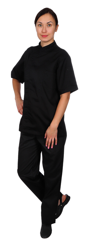 - Куртка шеф-повара премиум черная рукав короткий (отделка черный кант) [00014]