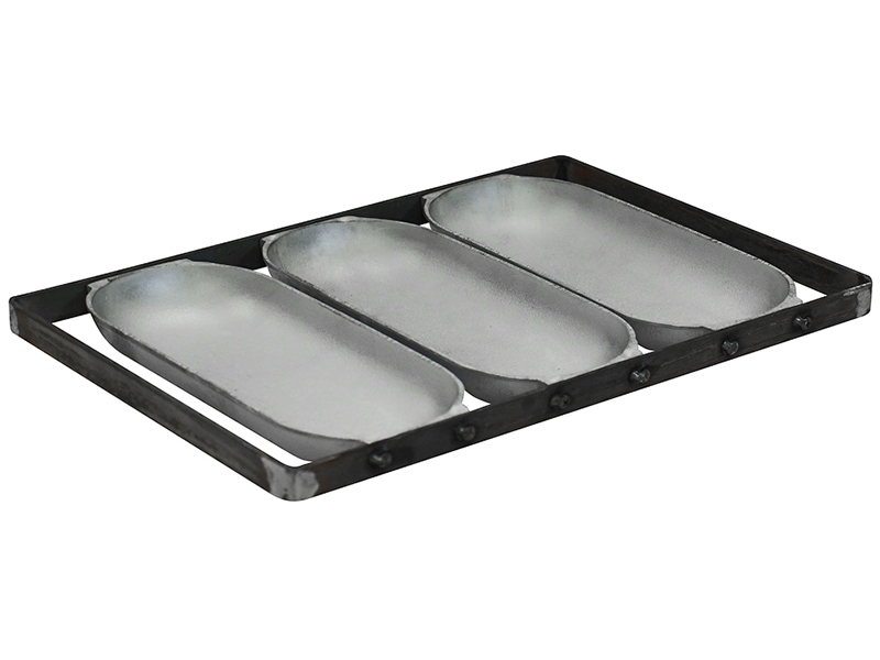 - ФОРМА ХЛЕБНАЯ алюм. литая Батонница 250х105х30мм. 3-секционная с ручками 40см