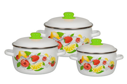 - Набор кастрюль эмалированных 3 предмета Лимон