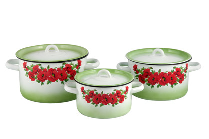 - Набор кастрюль эмалированных 3 предмета Восточный мак