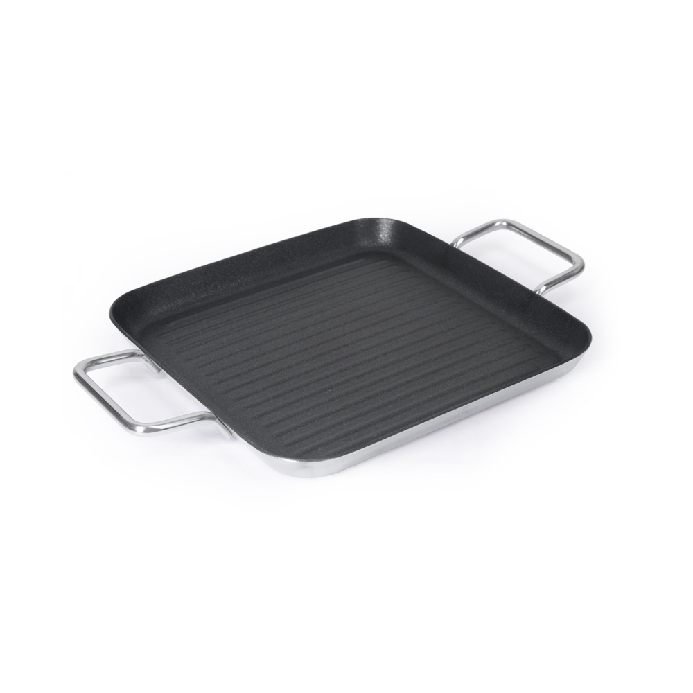 - СКОВОРОДА-ГРИЛЬ квадратная 240х240 нерж. антиприг. покрытие с двумя ручками, ИНДУКЦИЯ, LUXSTAHL
